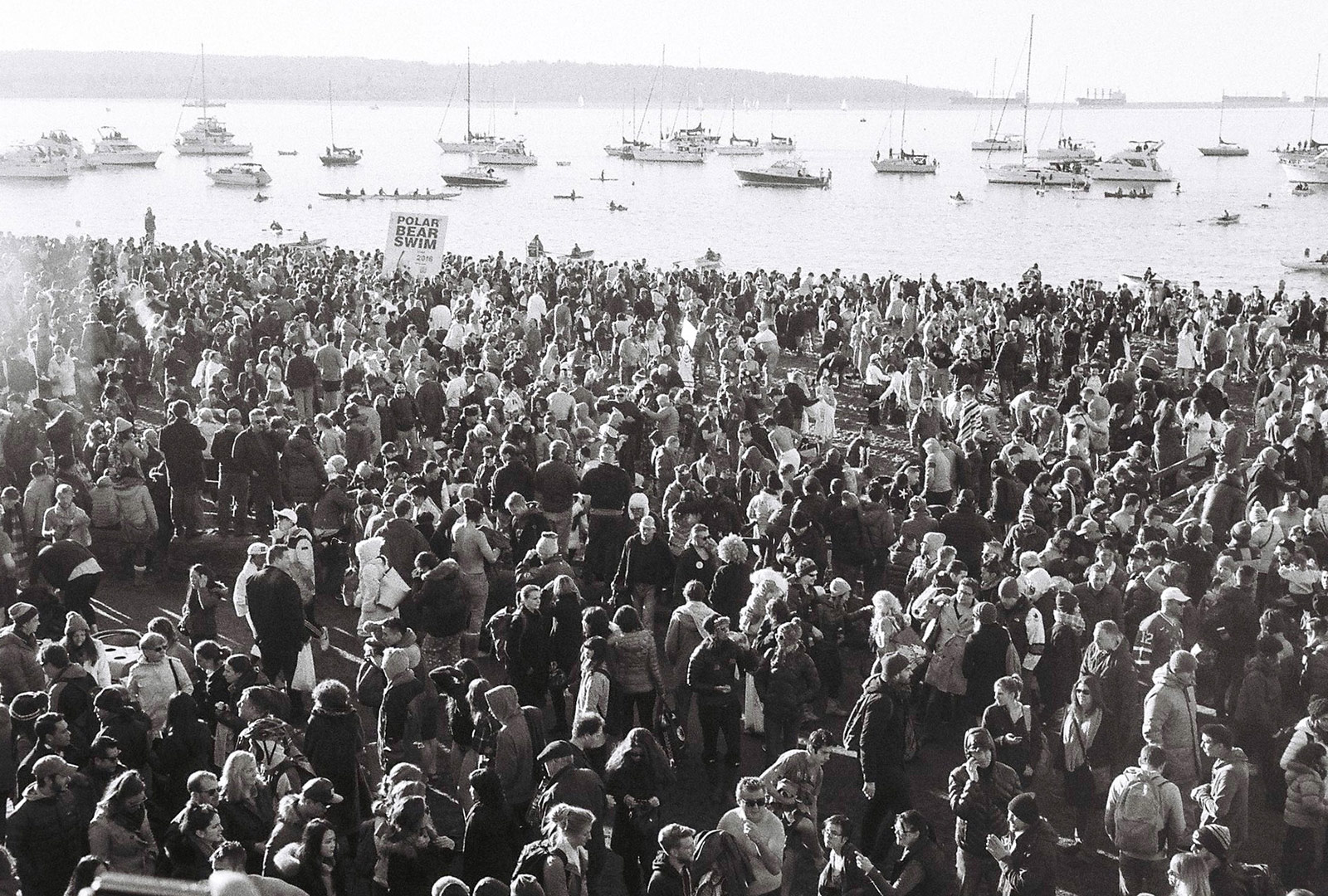Every year, on New Year’s Day, thousands of people go swimming in English Bay at temperatures around 0°. They call it the ‘Polar Bear Swim’. I went there and found… crowds. Who would have guessed?